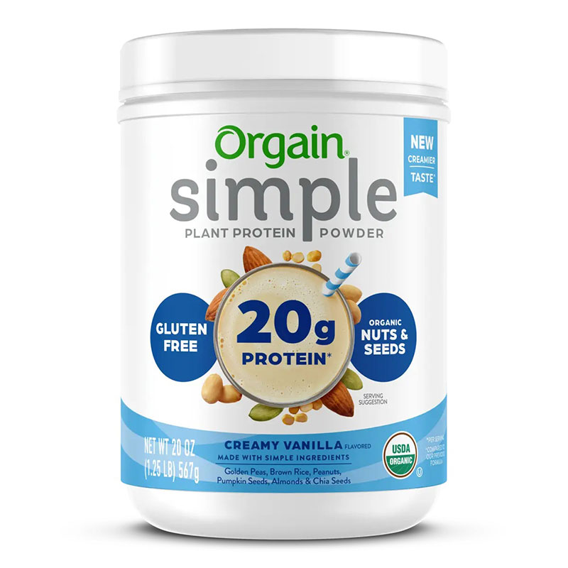 Orgain Simple Organic Creamy Vanilla Flavored Plant Protein Powder is a deliciously clean, plant-based protein powder made from just a handful of high-quality ingredients with names you can pronounce.