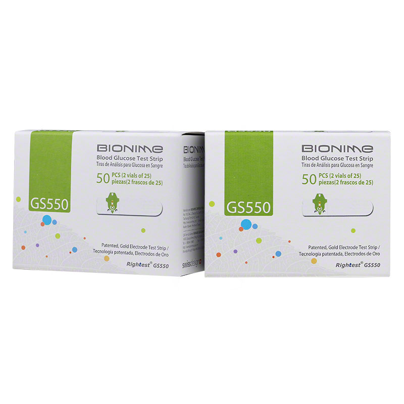 The Bionime Rightest GS550 Test Strips (Case of 12) were designed to be used with the GS550 Blood Glucose Monitoring System. These strips are ideal for diabetics who suffer from arthritis, obesity, lost movement from stroke, or any other paralysis. Its larger size makes it much easier to handle than other test strip. These strips are made of plastic rather than paper or Mylar, which makes them much more durable.