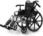 • Fixed full arm with swing away footrest with plastic footplate.