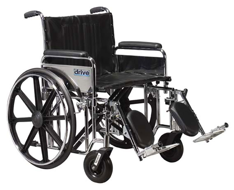 Drive Medical 20" Sentra EC Heavy-Duty Wheelchair - STD20ECDFAHDSF. The Bariatric Sentra EC Heavy Duty Wheelchair with Detachable Full Arms and Swing Away Footrests by Drive Medical comes with a "Dual Cross Bar" that reinforces the carbon steel frame, making this chair capable of a 450 lbs.