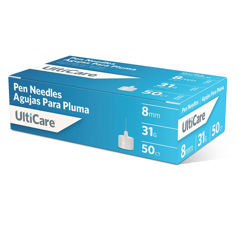 Ulticare Pen Needles 8mm 31g x 5/16" are now available in a convenient, easy dispense 50 count box! May be used as replacement needles for all Type A Insulin pen delivery devices including: Autopen, Solostar, Humalog Pen, Humulin Pen, Victoza, InnoLet, OptiClick, NovoPen Junior & Echo, NovoPen 3ml & 4ml, FlexPen, Novolin, Byetta, Forteo Pen, SymlinPen, HumaPen.