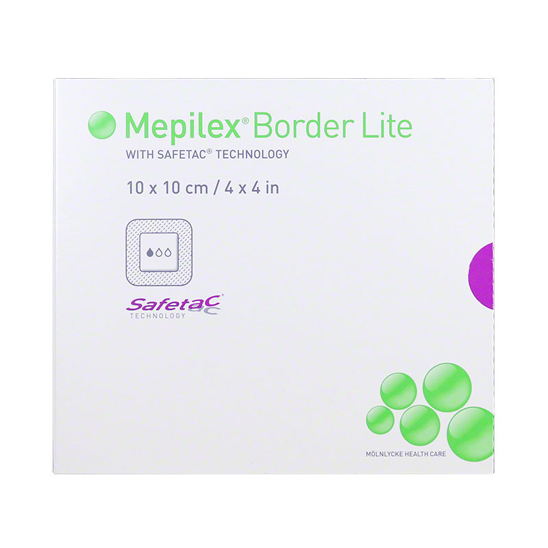 Molnlycke Mepilex Border Lite 4" X 4" 5/bx 281300 is atraumatic to the wound and surrounding skin upon removal. It is a thin and conformable, all-in-one foam dressing with SafetacĀ®, soft, silicone technology. Seals around the wound margins to reduce the risk of maceration.