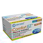 Clever Choice Comfort EZ Insulin Syringes 31G 1 cc 5/16" 100/bx - Case of 5 provide the best combination of quality, comfort, and value. The ultra fine, surgical stainless steel needle of the Clever Choice Comfort EZ insulin syringe is coated with a lubricant film for maximum comfort. Design minimizes waste and makes measuring more precise. Easy-to-read graduated numbers minimize dosage errors. Sold in boxes of 100 syringes each.