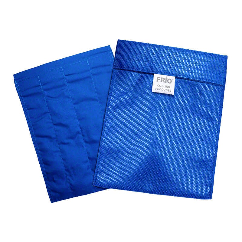 To activate your Frio Wallet, it is simply immersed in cold water for 5-15 minutes (depending upon the size). Crystals contained in the panels of the Wallet then expand into a gel-like substance, and remains in this form for several days. Once sufficiently activated, remove from water and wrap in a towel to absorb excess water. Remove from towel (your Frío is now dry to the touch) and let your Frío lay on a surface to begin to air dry for a minimum of 20 minutes (longer is possible). After air-drying, (air-drying is a very important step) the wallet can be placed into the Cambrelle™ cover and your medication inserted. The crystals contained in the panels of the wallet expand into a gel form, which remains cool for several days relying on the process of evaporation for cooling.