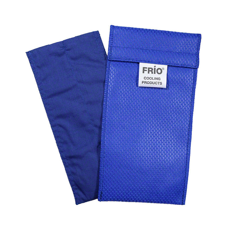 To activate your Frio Wallet, it is simply immersed in cold water for 5-15 minutes (depending upon the size.) Crystals contained in the panels of the Wallet then expand into a gel-like substance, and remains in this form for several days. Once sufficiently activated, remove from water and wrap in a towel to absorb excess water. Remove from towel (your Frío is now dry to the touch) and let your Frío lay on a surface to begin to air dry for a minimum of 20 minutes (longer is possible). After air-drying, (air-drying is a very important step) the wallet can be placed into the Cambrelle™ cover and your medication inserted. The crystals contained in the panels of the wallet expand into a gel form, which remains cool for several days relying on the process of evaporation for cooling.