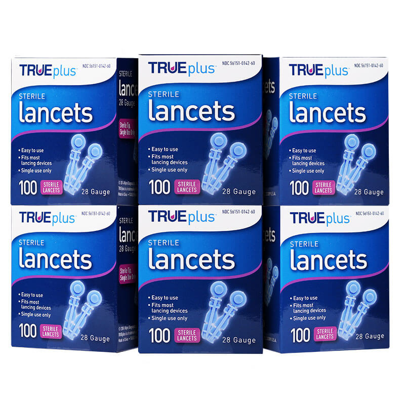 6 boxes of TRUEplus Sterile Lancets 28G Universal Twist Top 100/box. For your convenience, these TRUEplus single-use sterile lancets fit most lancing devices. For your comfort, these lancets deliver smooth skin penetration.