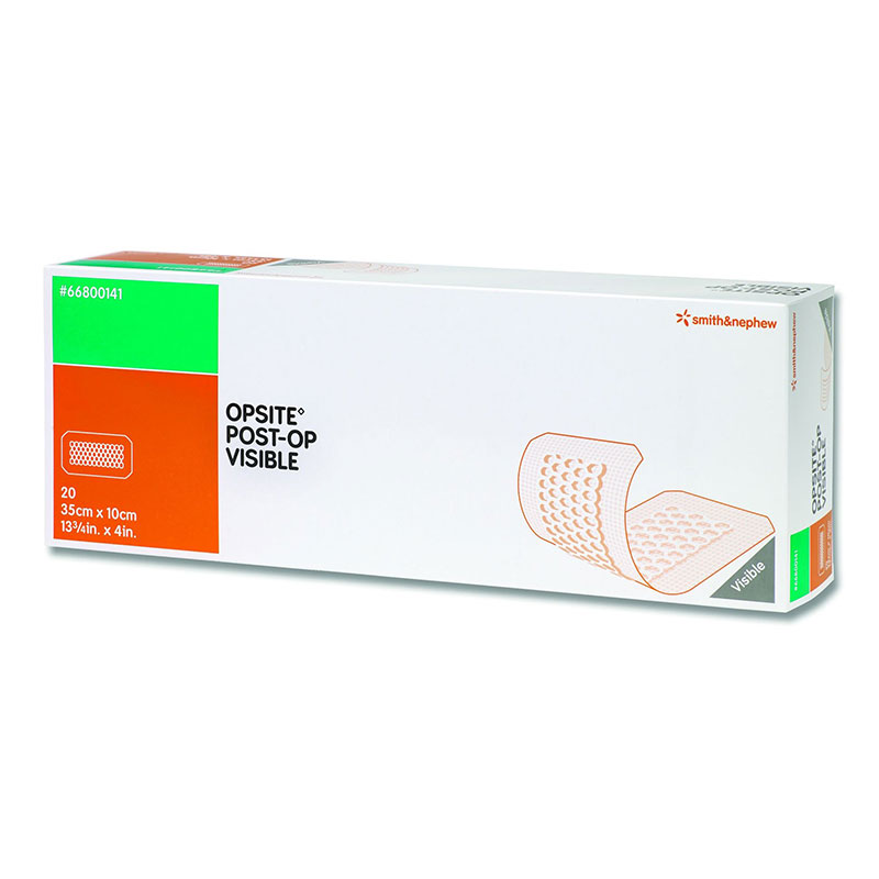 Smith and Nephew Opsite Post Op Dressing 13 3/4"x4" is made from the patented REACTIC film that reacts to transpire excessive moisture. With an absorbent pad and a low-adherent wound contact layer, OPSITE Post-Op provides a waterproof, conformable barrier to contamination. Box of 20.