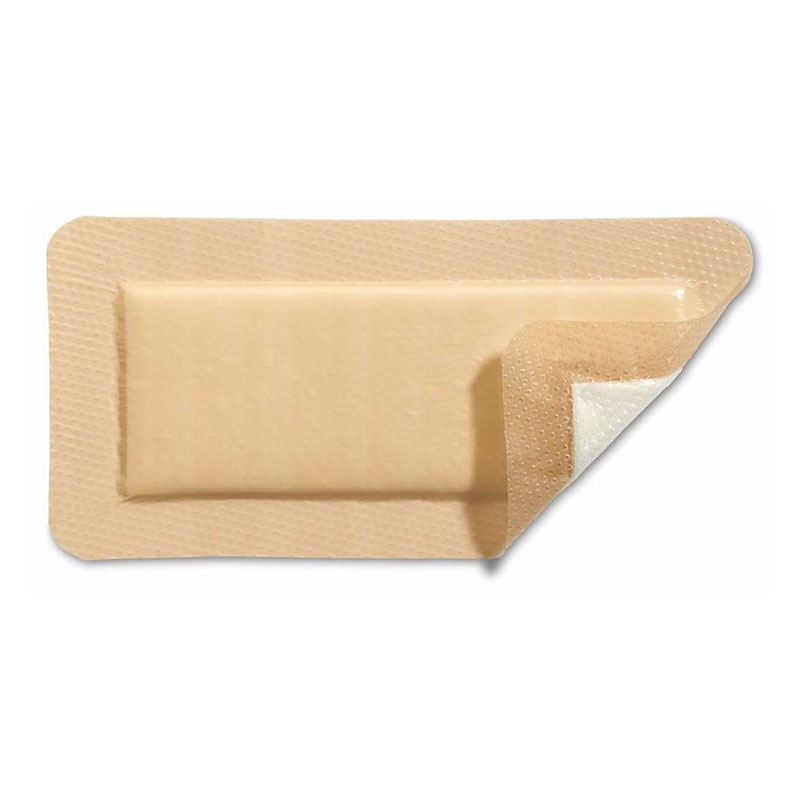 Molnlycke Mepilex Border (4" by 8", part number 295800) is a post-operative dressing for wounds, cuts and abrasions. It is designed to minimize the risk of blistering, and features Safetac, which makes changing dressings much less painful. Pack of 3 boxes (5 dressings per box).