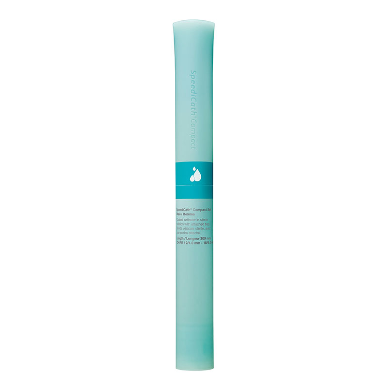 SpeediCath Compact Set - Male is an instantly ready-to-use hydrophilic catheter in a compact design with an integrated bag for both males and females. It is discreet and easy to use. Firm dry handle / connector for easy insertion. This device is not made with natural rubber latex and is DEHP and phtalate free.