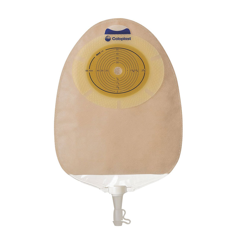 SenSura 1-Piece Urostomy Pouching Systems features SenSura Standard Wear, MIDI, Urostomy Pouch, is transparent, is cut-to-fit, and not made with natural rubber latex, stoma size: 3/8 - 2 1/2" (10-66 mm).